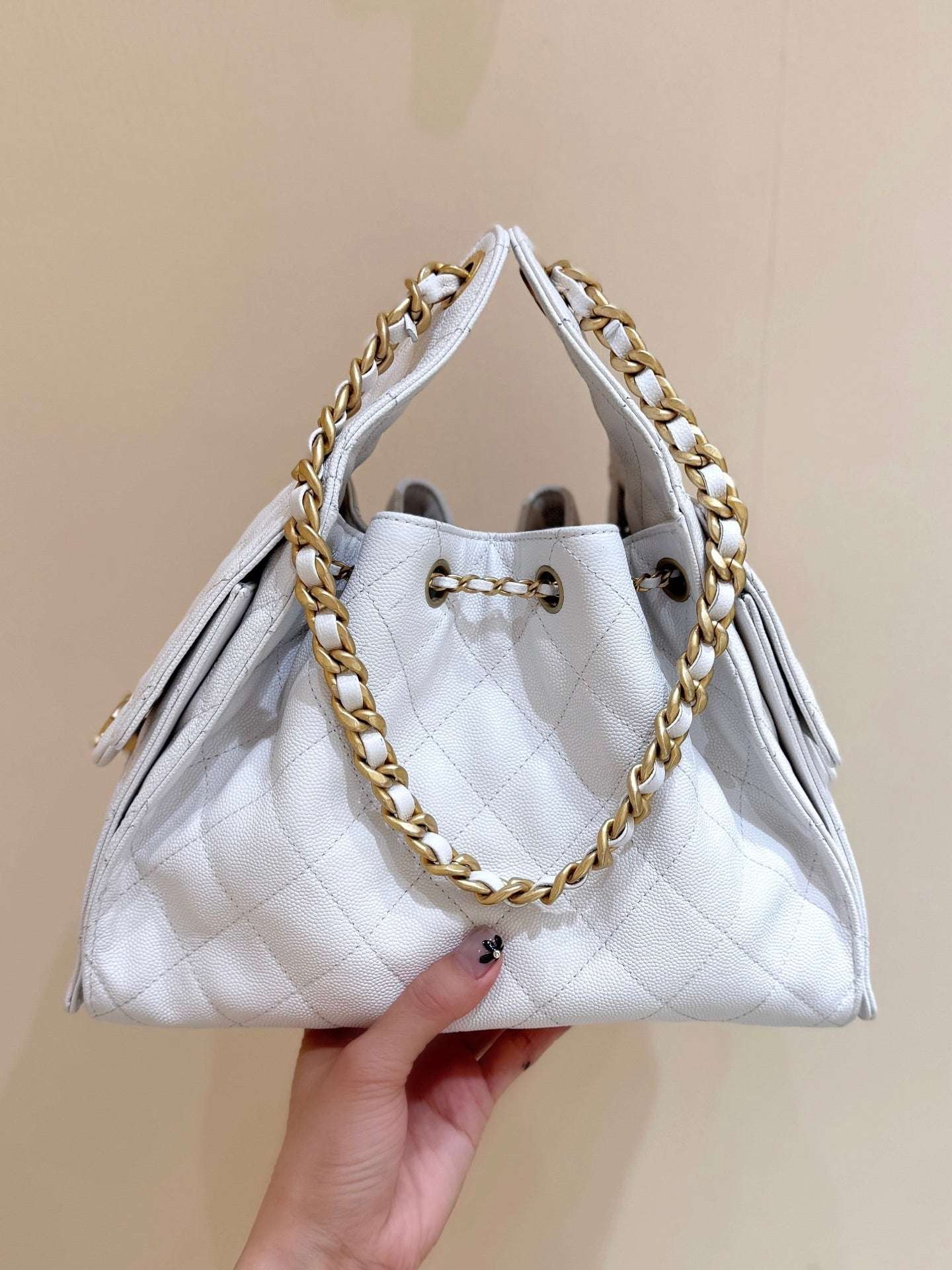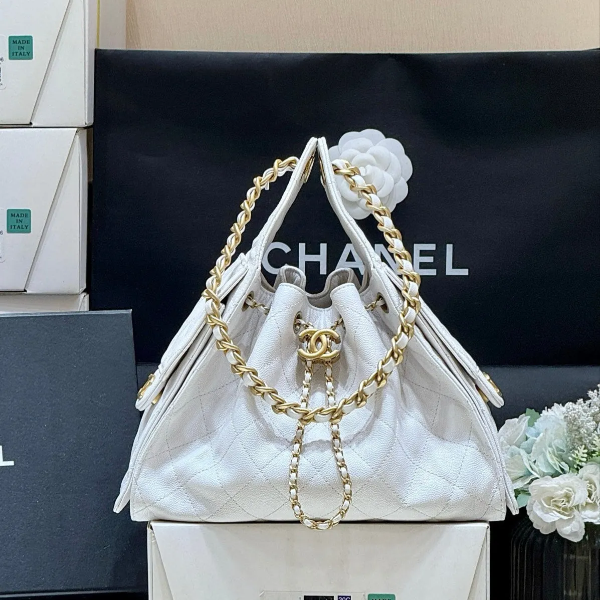 CHANEL 25 HANDBAG IN WHITE 30 GOLD HARDWARE