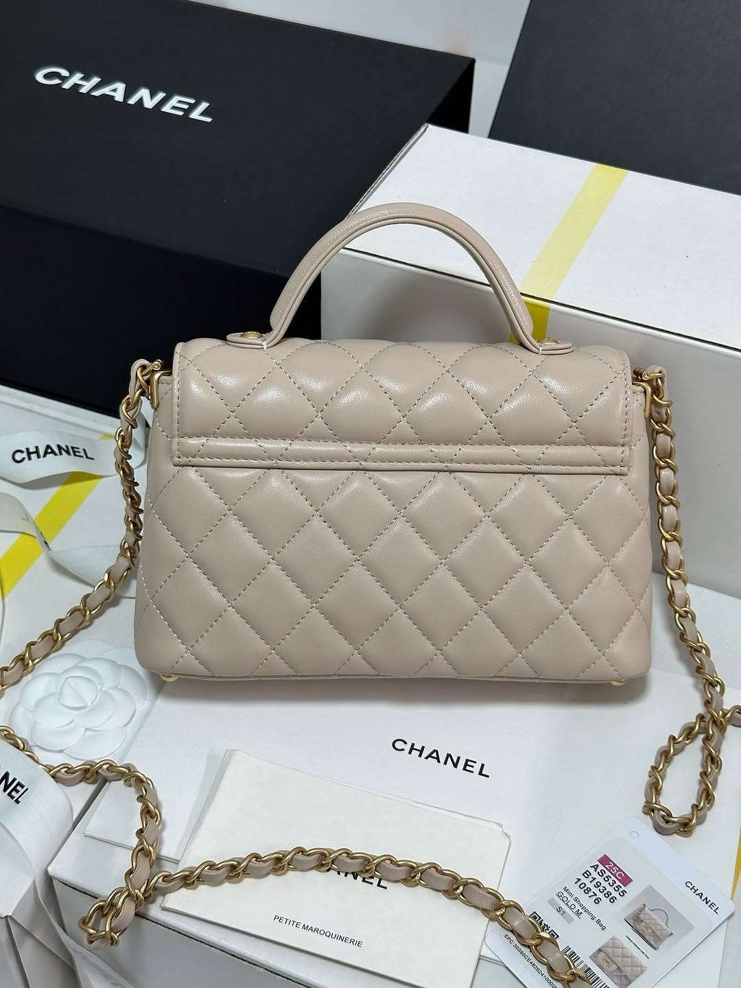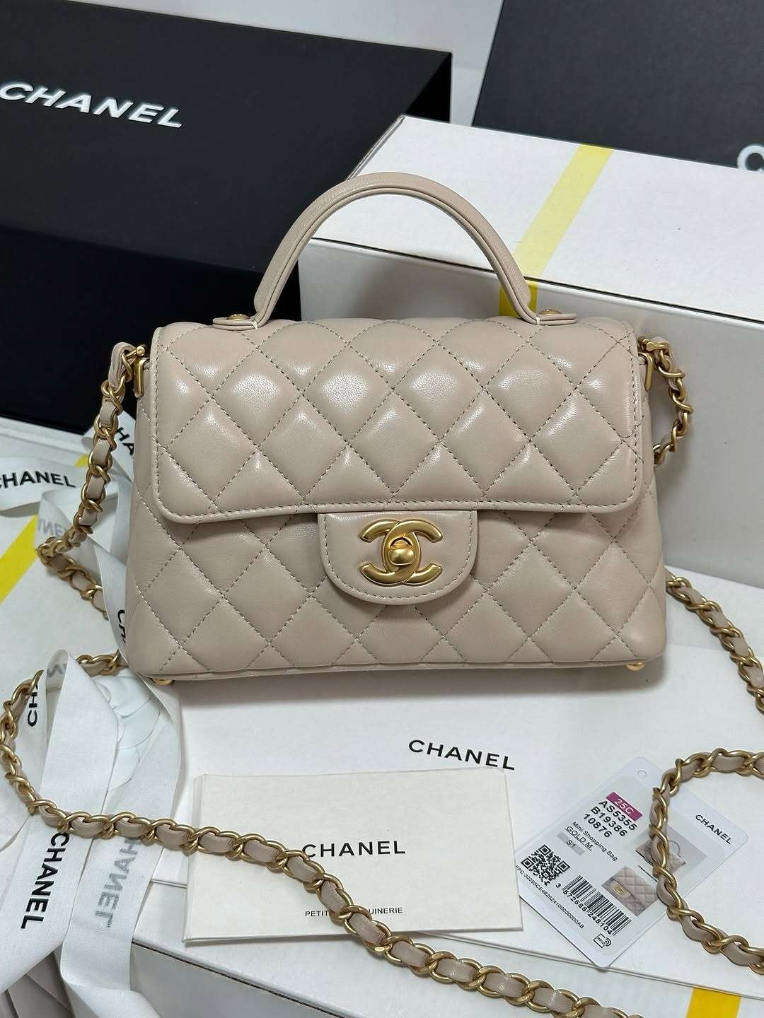 Chanel Beige Leather Small Top Handle Flap Bag - LuxuryRepBags