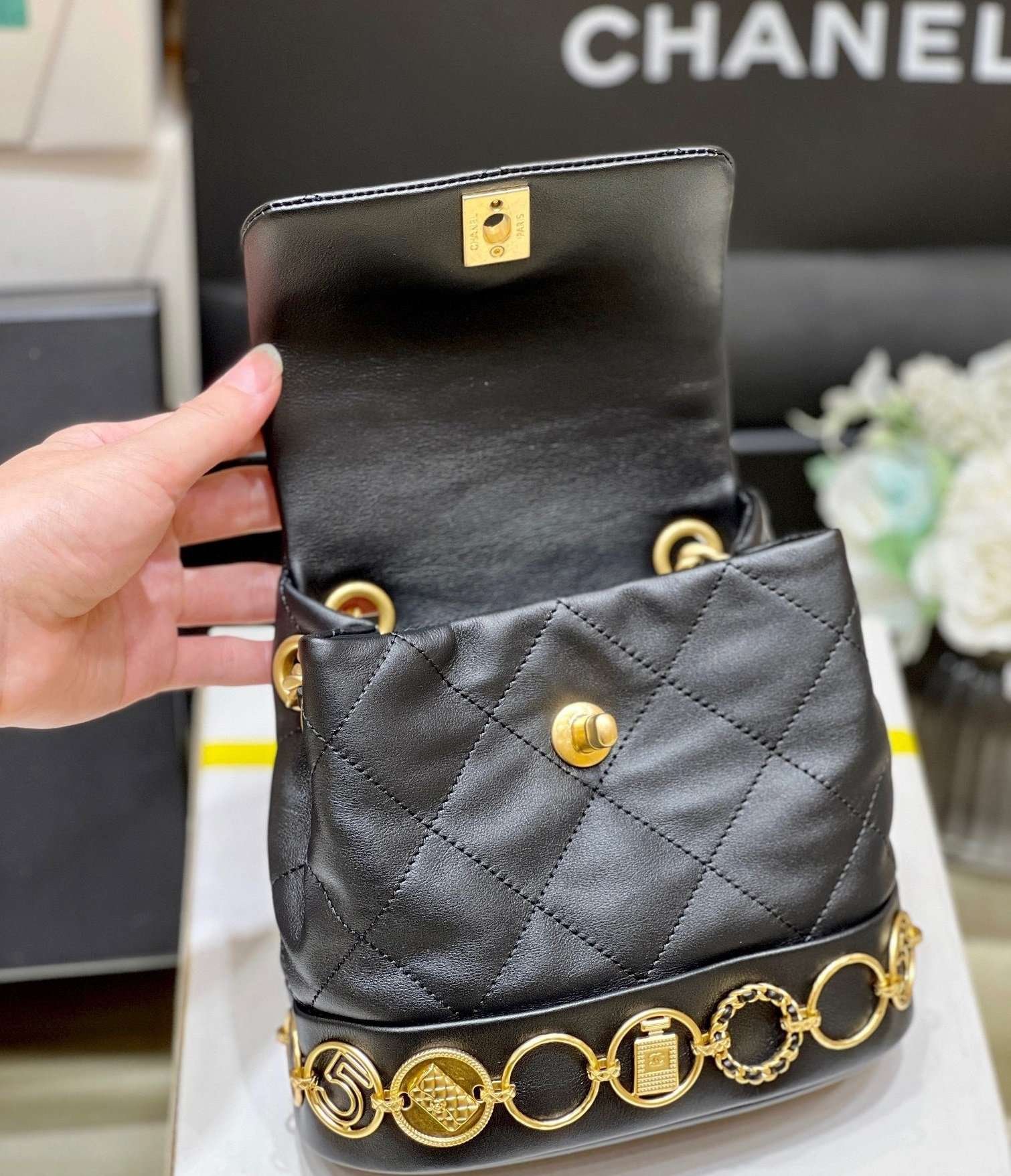 Chanel Charm Backpack Replica 11 Black Smooth Leather 18x18x8cm - LuxuryRepBags
