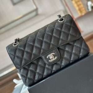 Be the first to review “Chanel Classic 11 Handbags Woman’s Black Leather Lock Silver 23cm”