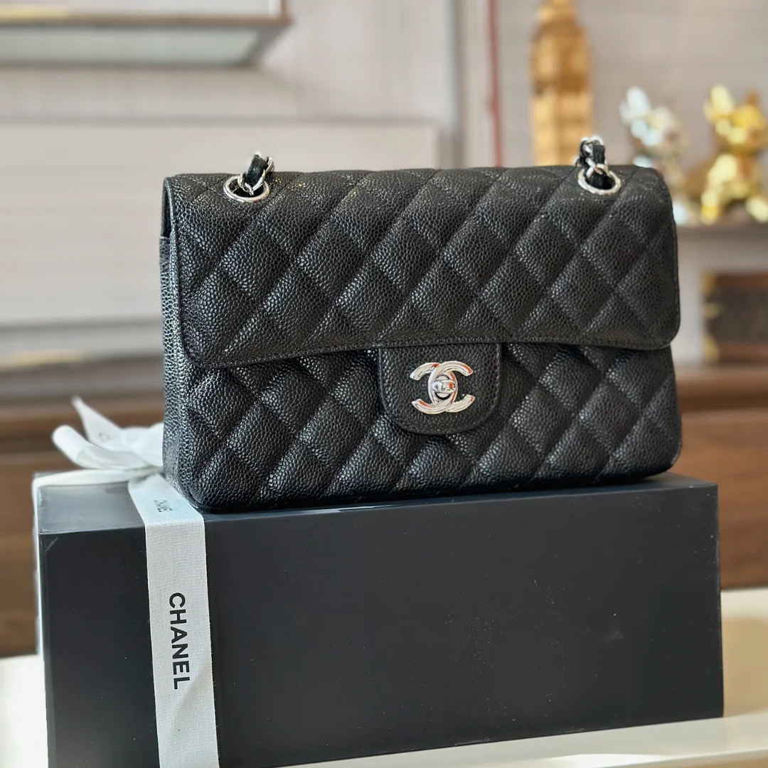 Chanel Classic 11 Handbags Woman’s Black Leather Lock Silver 23cm