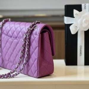 Chanel Classic Handbags Woman’s Purple Lock Silver 25cm
