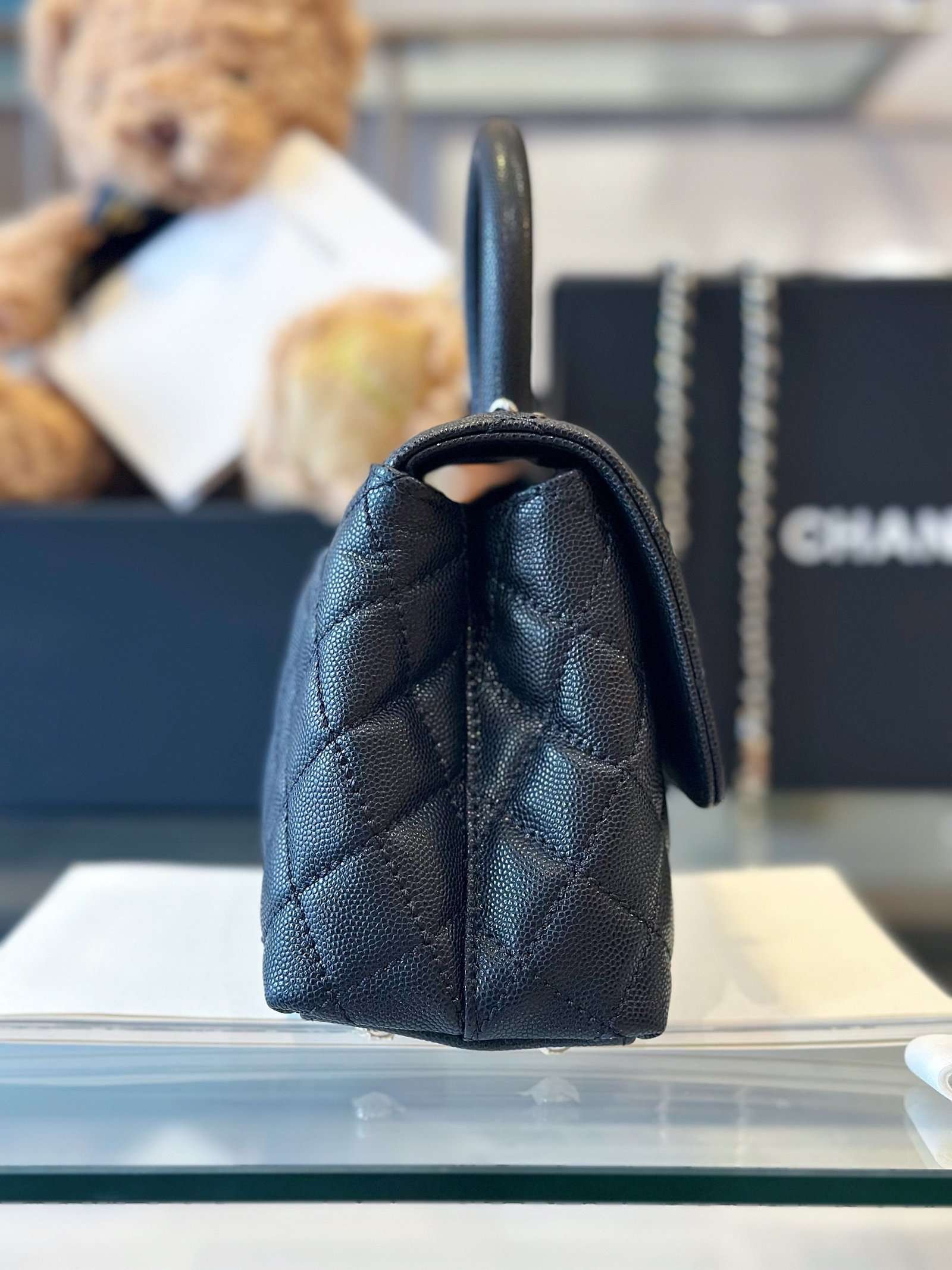 Chanel Coco Handbag Leather Black With Silver Lock 23cm - LuxuryRepBags
