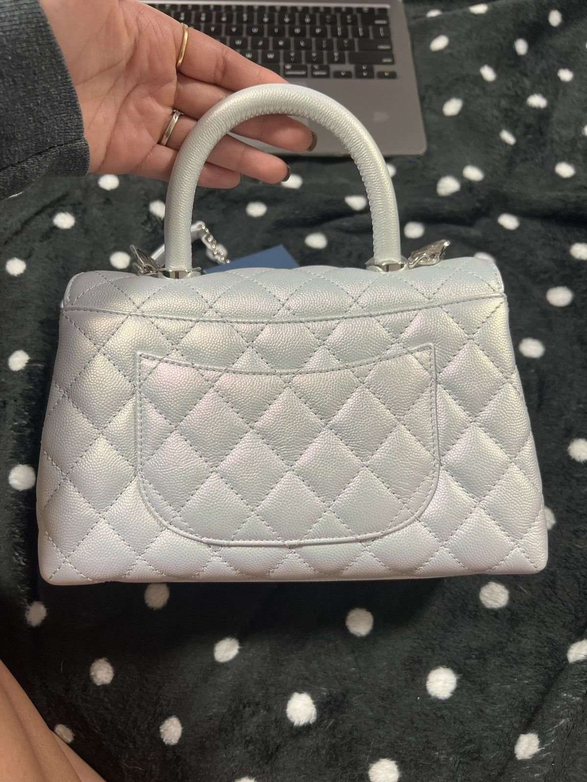 Chanel Coco Handbag Leather Light Grey Woman’s 23cm - LuxuryRepBags