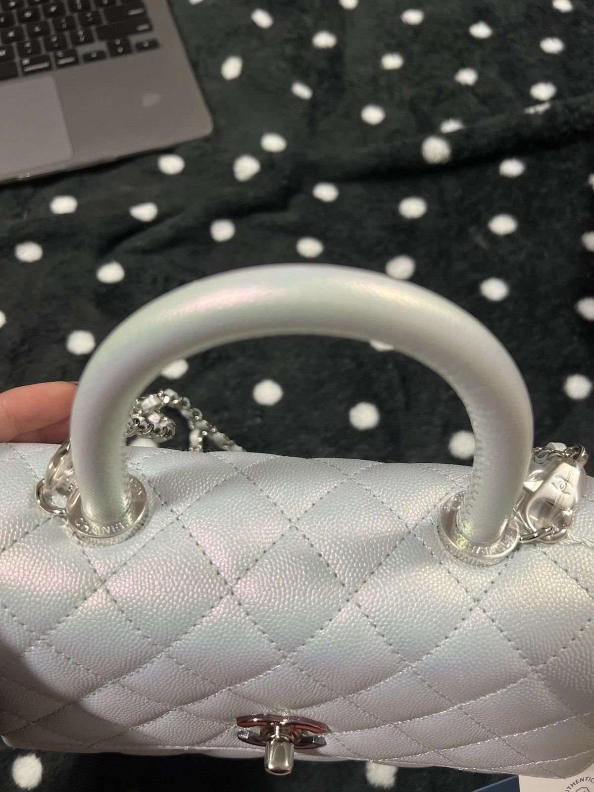 Chanel Coco Handbag Leather Light Grey Woman’s 23cm