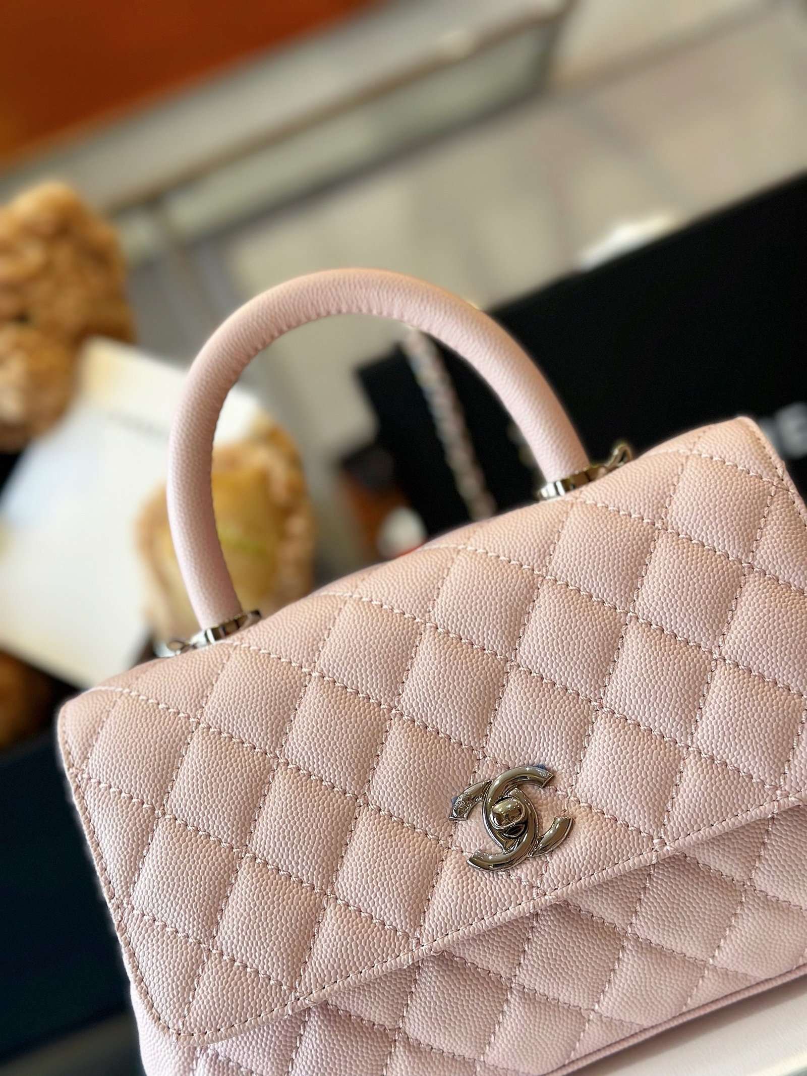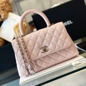 Be the first to review “Chanel Coco Handbags Leather Pink With Silver Lock 23cm”
