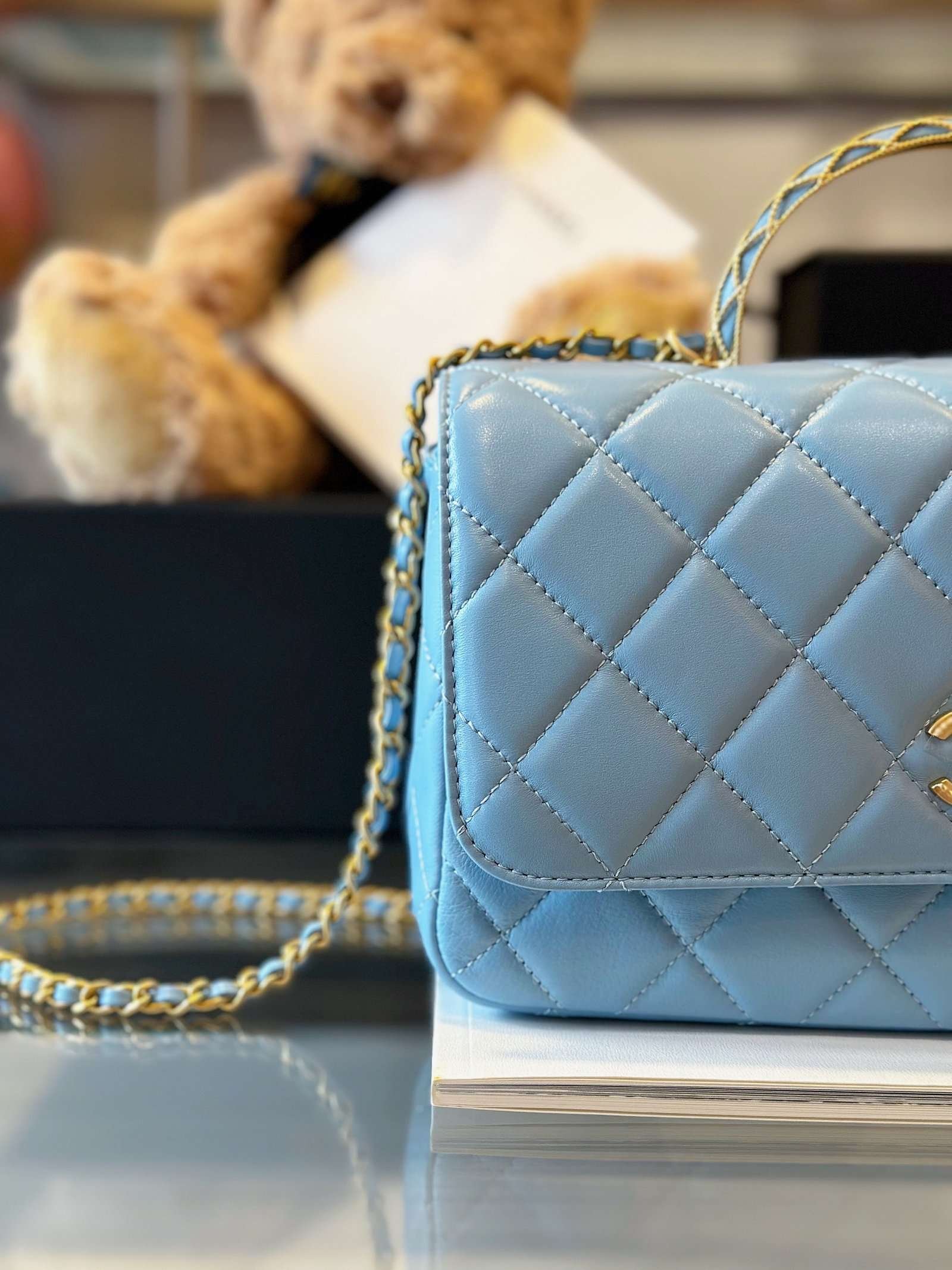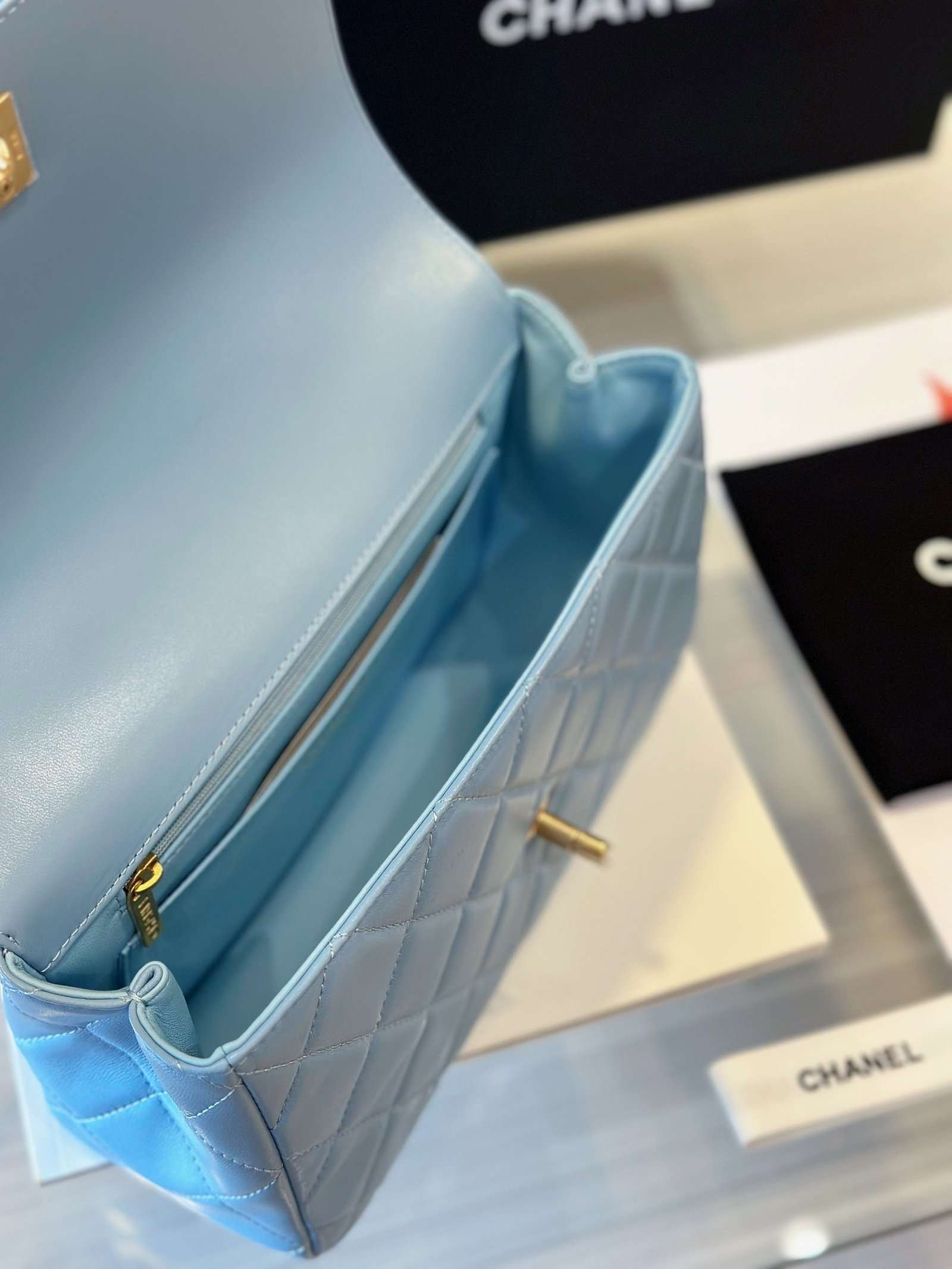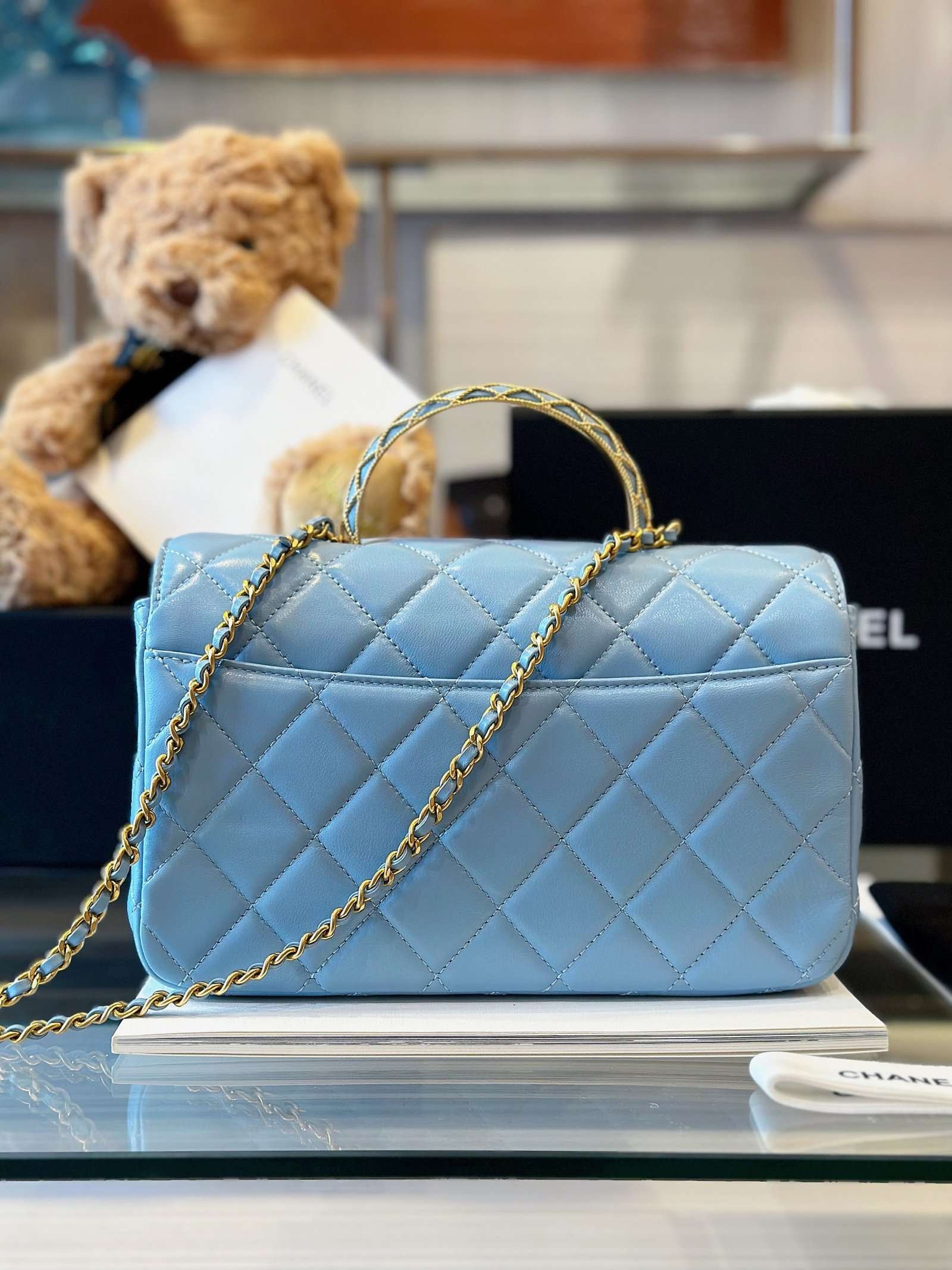 Chanel Coco Mini Handbag Like Auth Blue Smooth Leather With Lock Gold 22x21cm - LuxuryRepBags