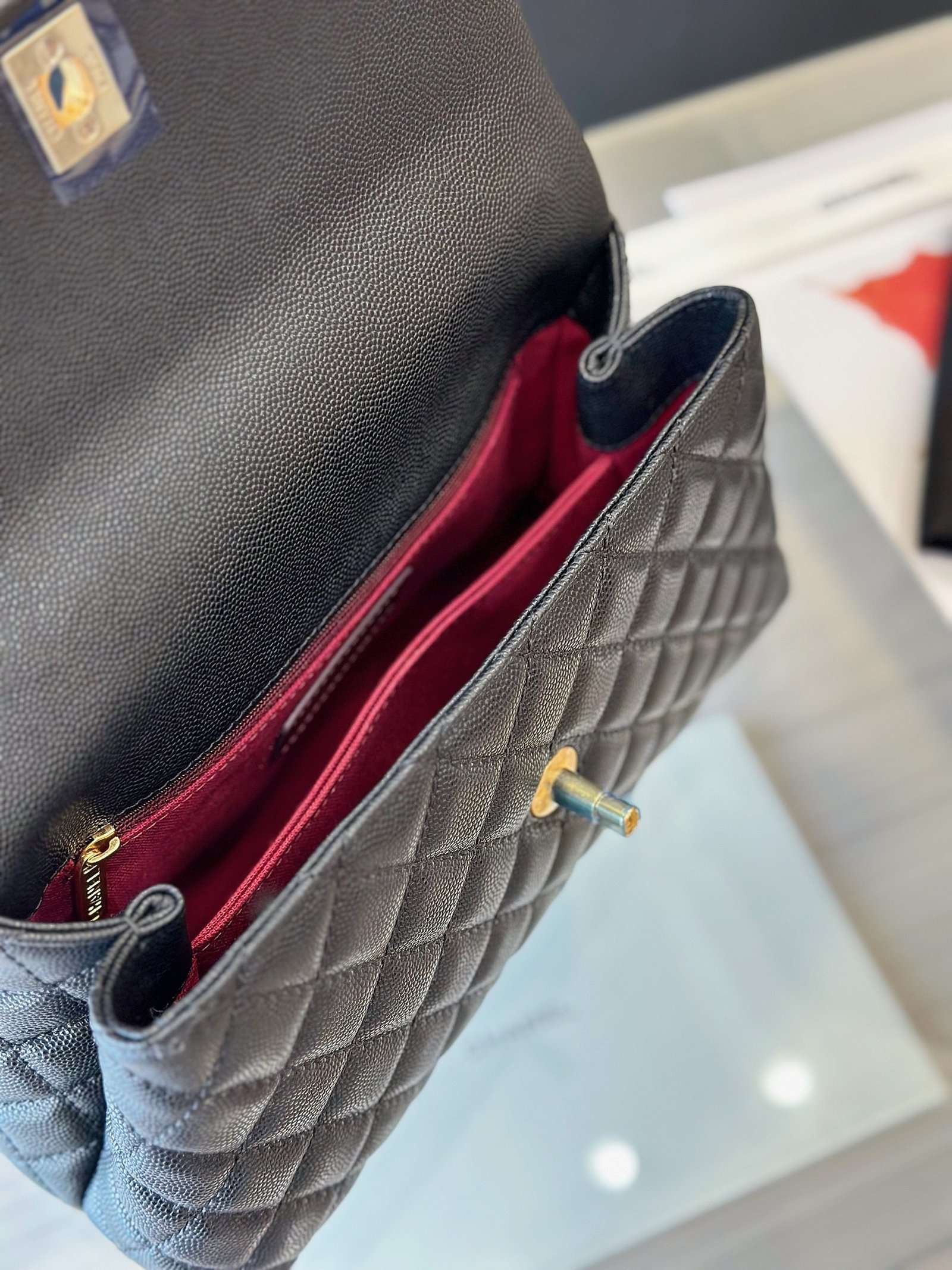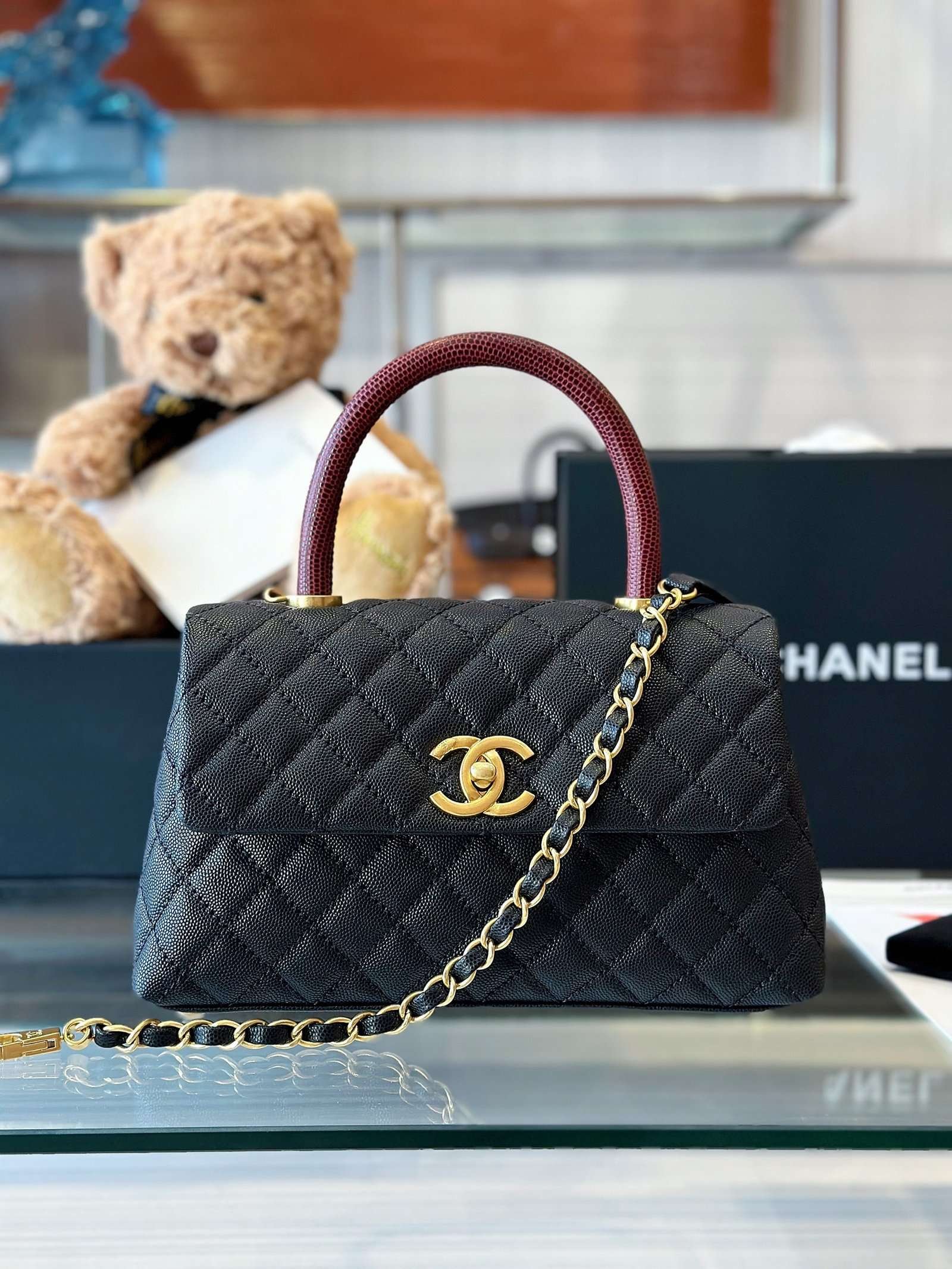 Chanel Handbag Coco Lock Gold Lizard Skin Black 24cm - LuxuryRepBags