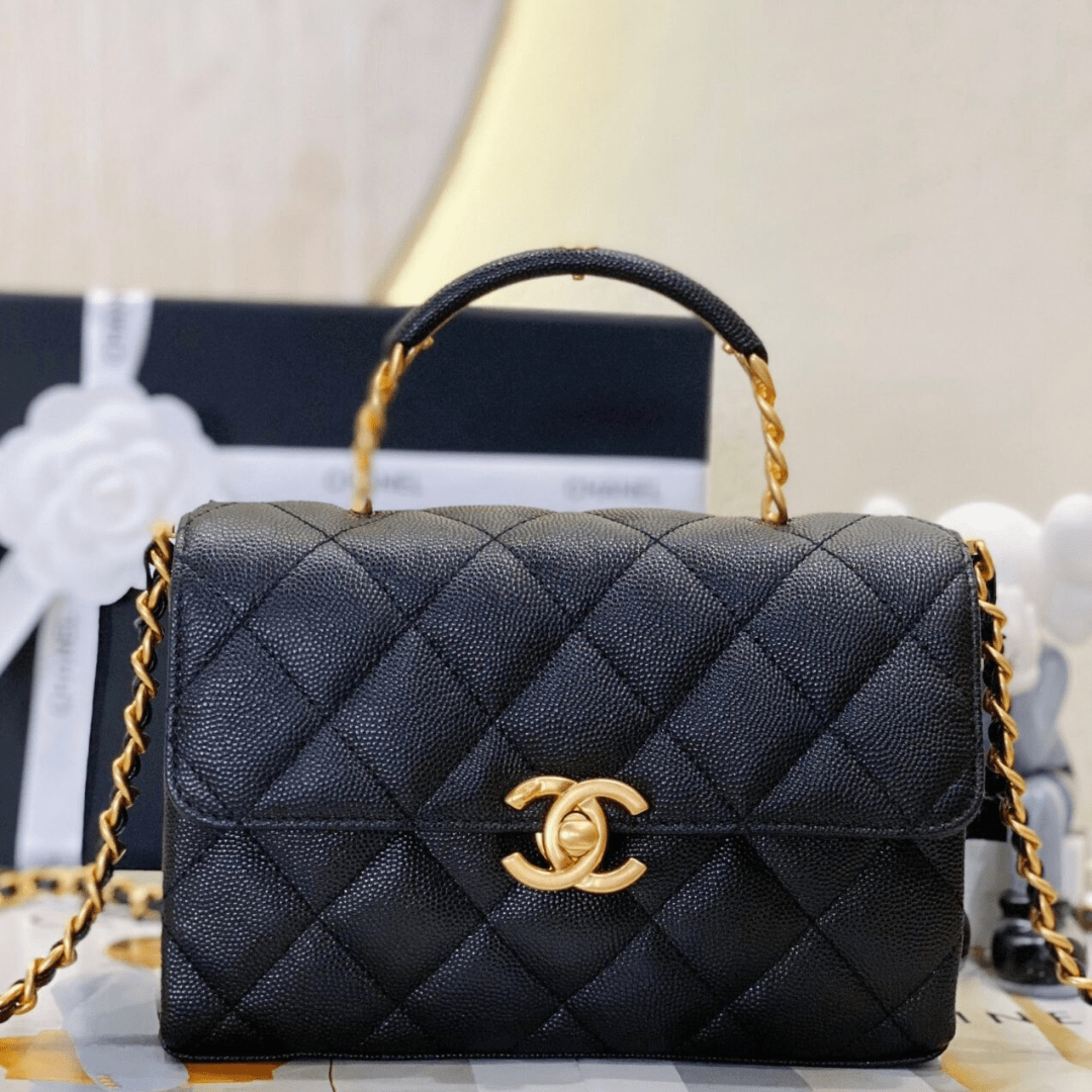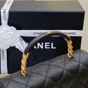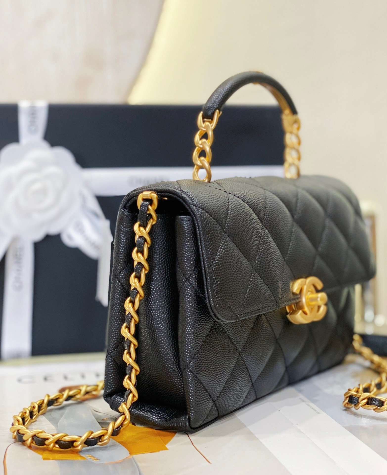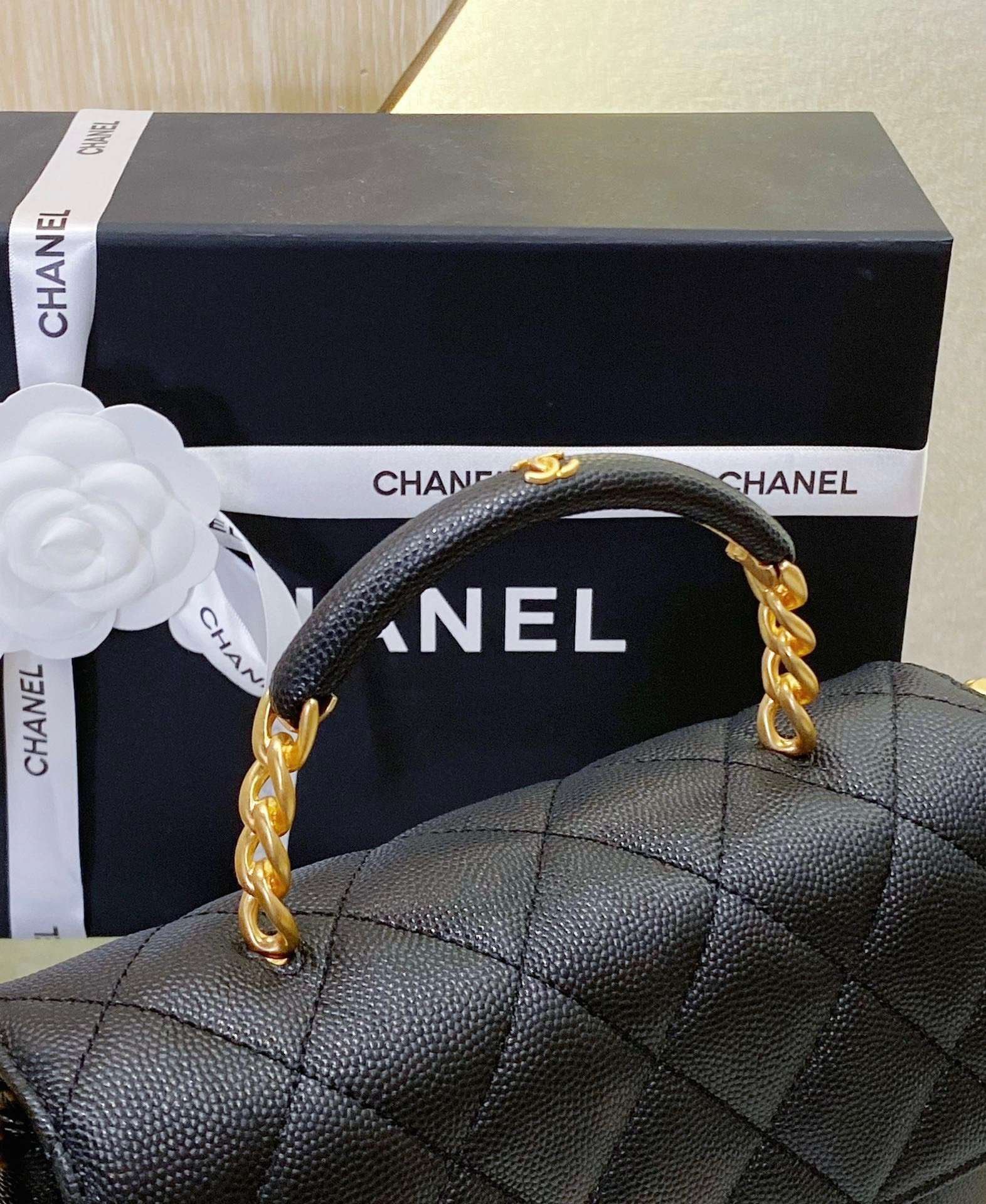 Chanel Handle Woman’s Black Leather Handbags Pebbled Leather 19cm - LuxuryRepBags