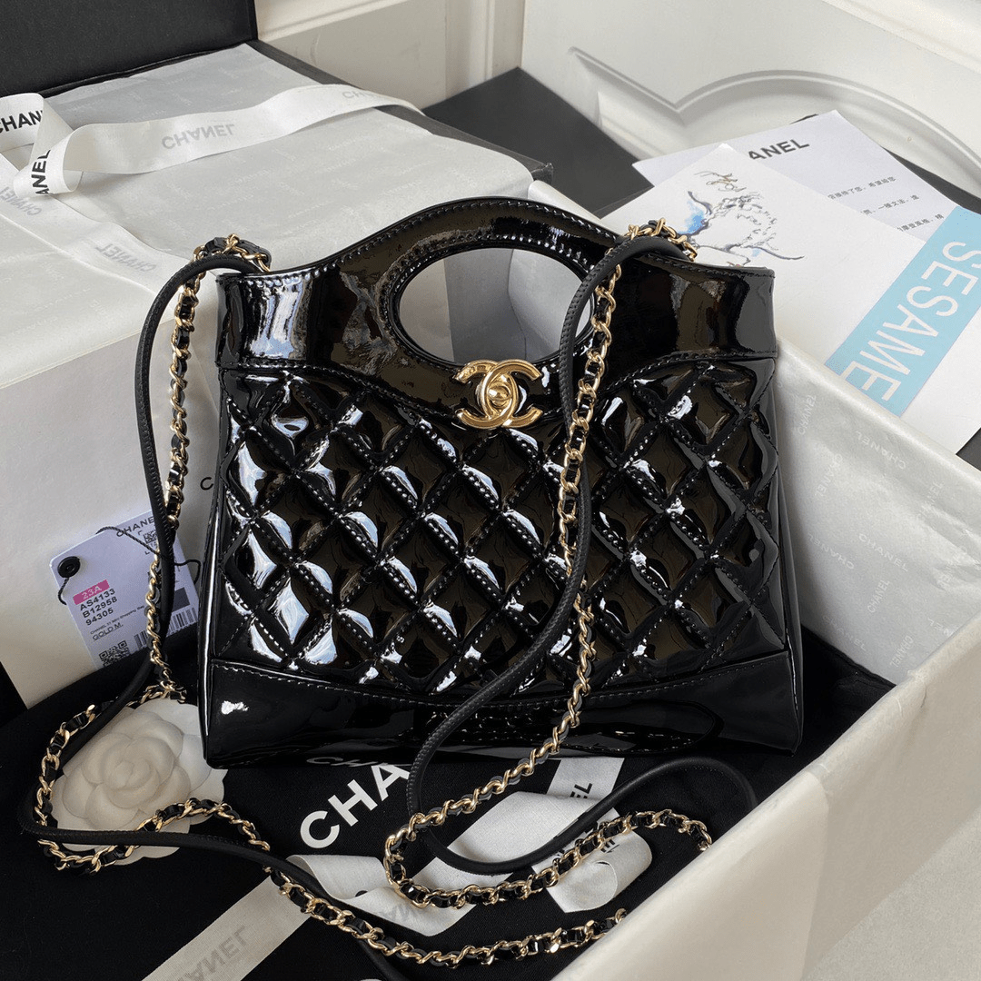 Chanel Mini Shopping Bag Handbags Shiny Leather Lock Gold 31cm - LuxuryRepBags