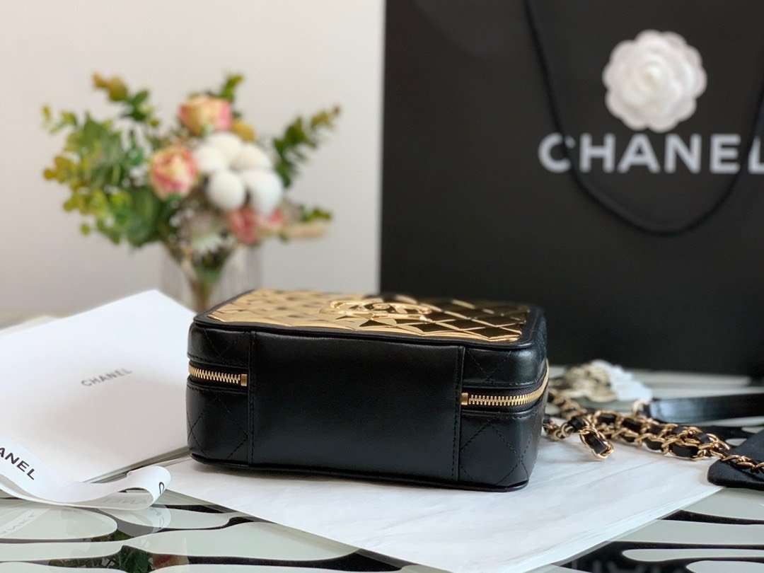 Chanel Vanity Case Black Yellow Replica 1:1 Box Form Handbags 19cm - LuxuryRepBags