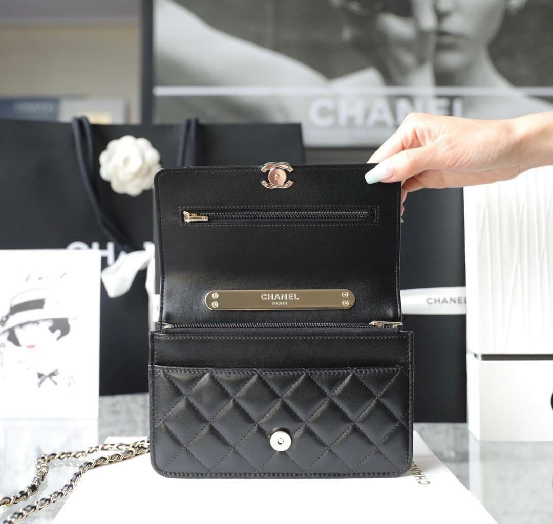 Chanel Woc Handbags Lock Silver Mix Handle Leather 19x12cm - LuxuryRepBags