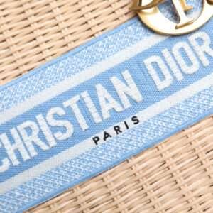DIOR LADY 24 BASKET BAG IN BLUE OBLIQUE JACQUARD MIX BEIGE WICKER - LuxuryRepBags