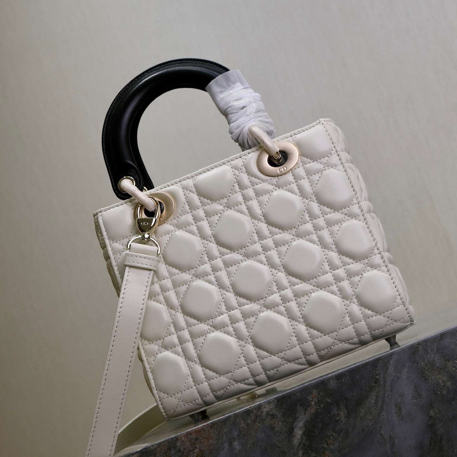 Be the first to review “DIOR LADY BAG 20 IN WHITE QUILTED MACROCANNAGE CALFSKIN BLACK STRAP”