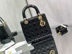 DIOR MINI 17 LADY BAG IN BLACK PATENT CALFSKIN - LuxuryRepBags