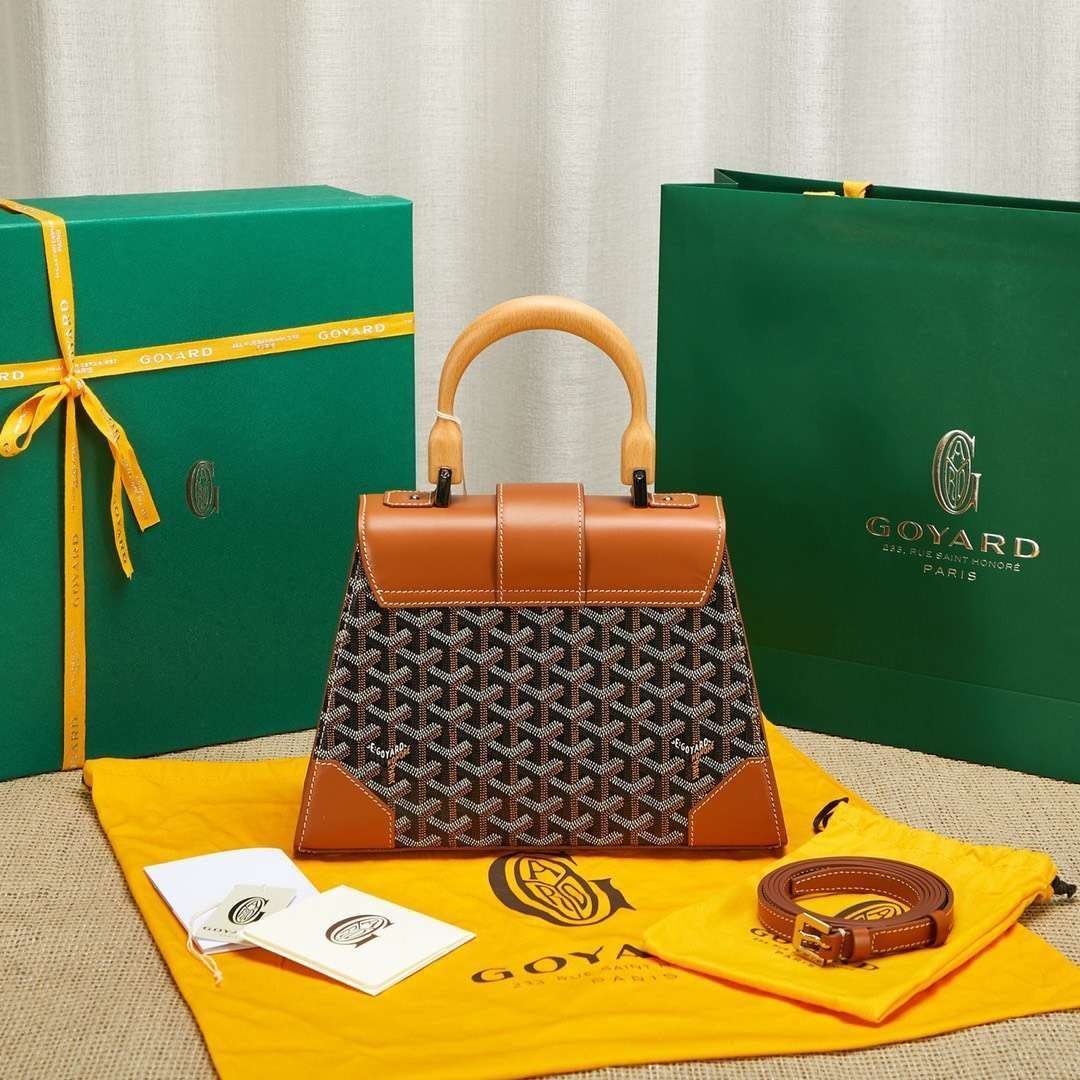 Goyard SAIGON Brown Handbag With Wooden Handle 28cm - LuxuryRepBags