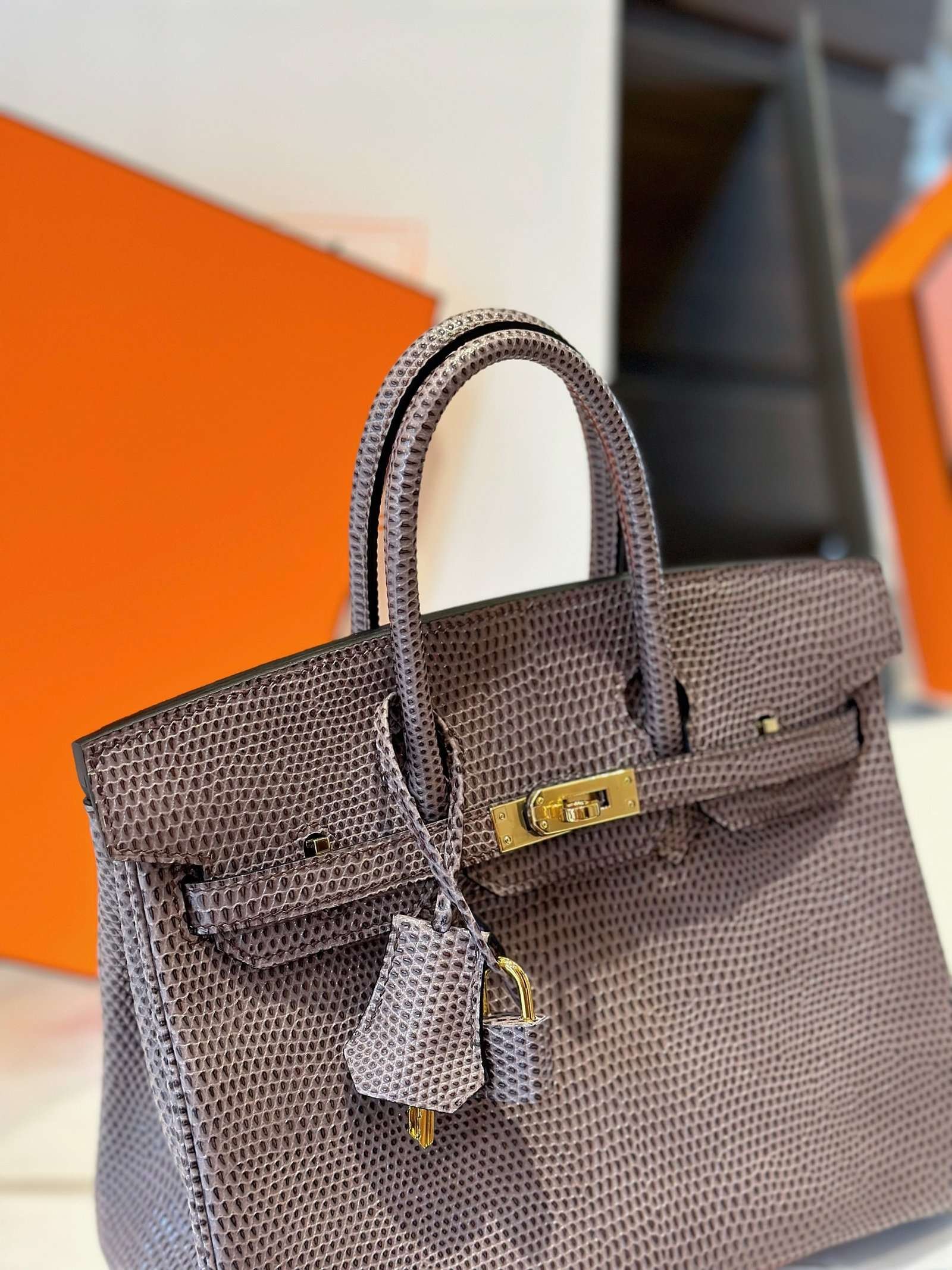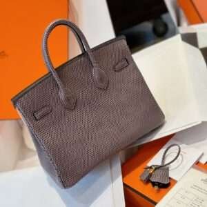 Hermes Birkin 25 Tris Fonce Lizard Bag With Lock Silver 25cm - LuxuryRepBags