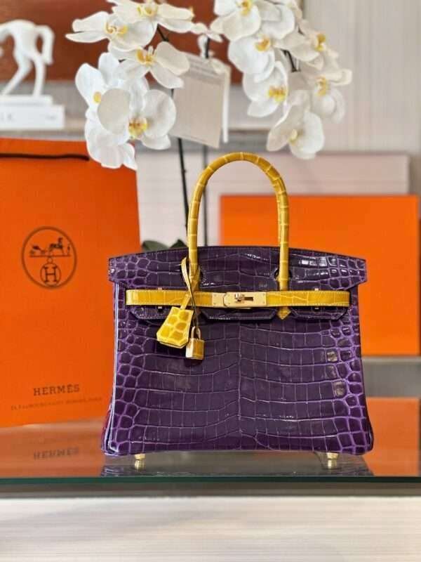 Hermes Birkin Crocodile Mix Purple With Yellow Handle Handbag 30cm - LuxuryRepBags