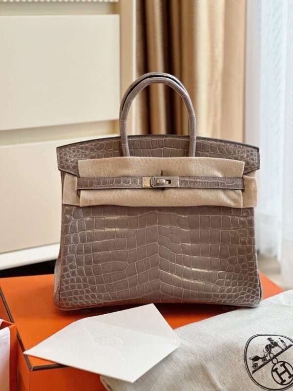 Be the first to review “Hermes Birkin Crocodile Silver Handbags Brown 25cm”