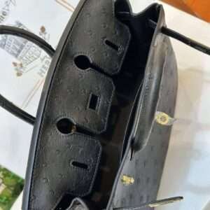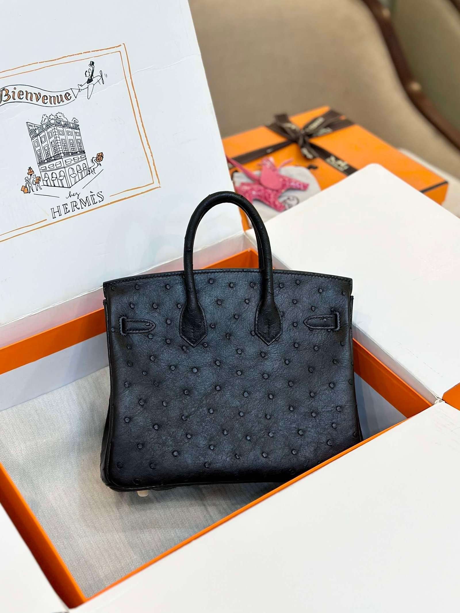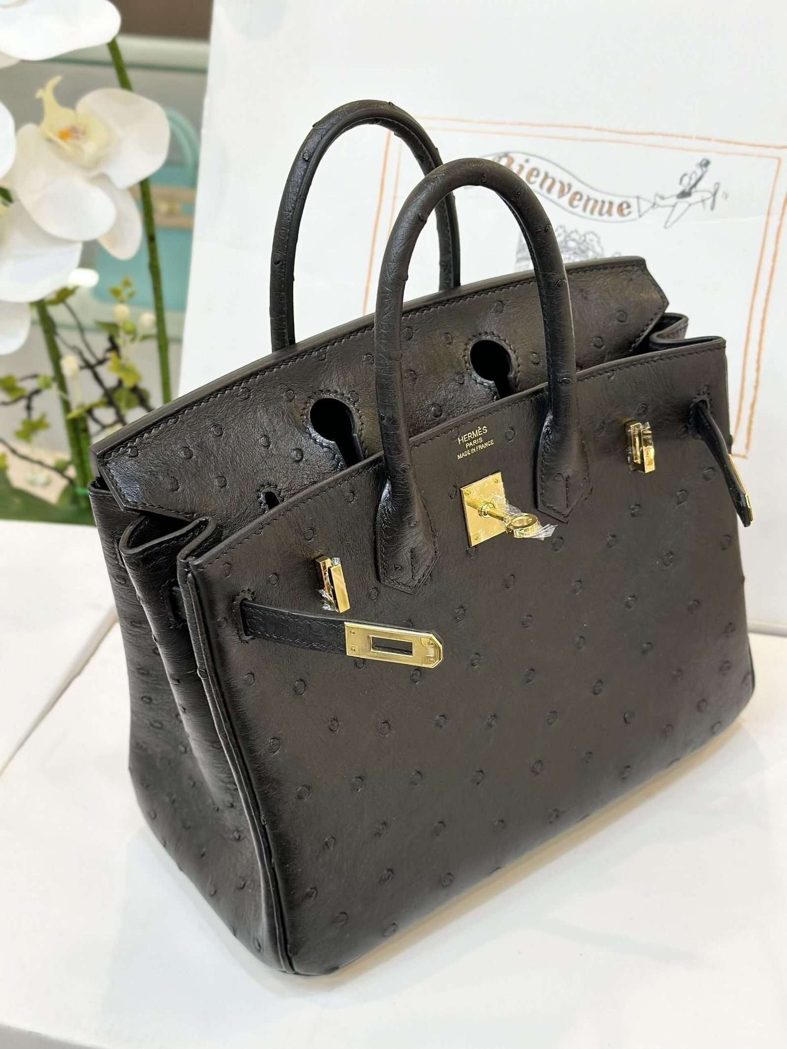 Hermes Birkin Ostrich Leather Handbag Black Lock Gold 25cm