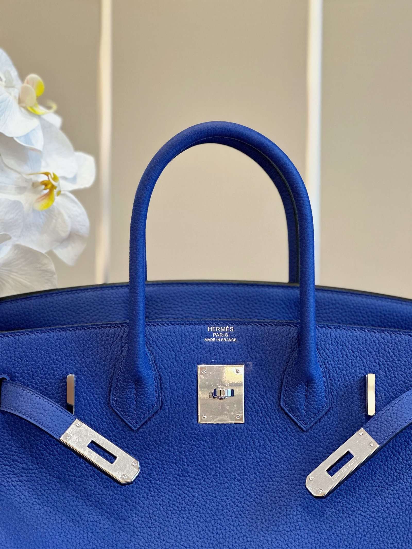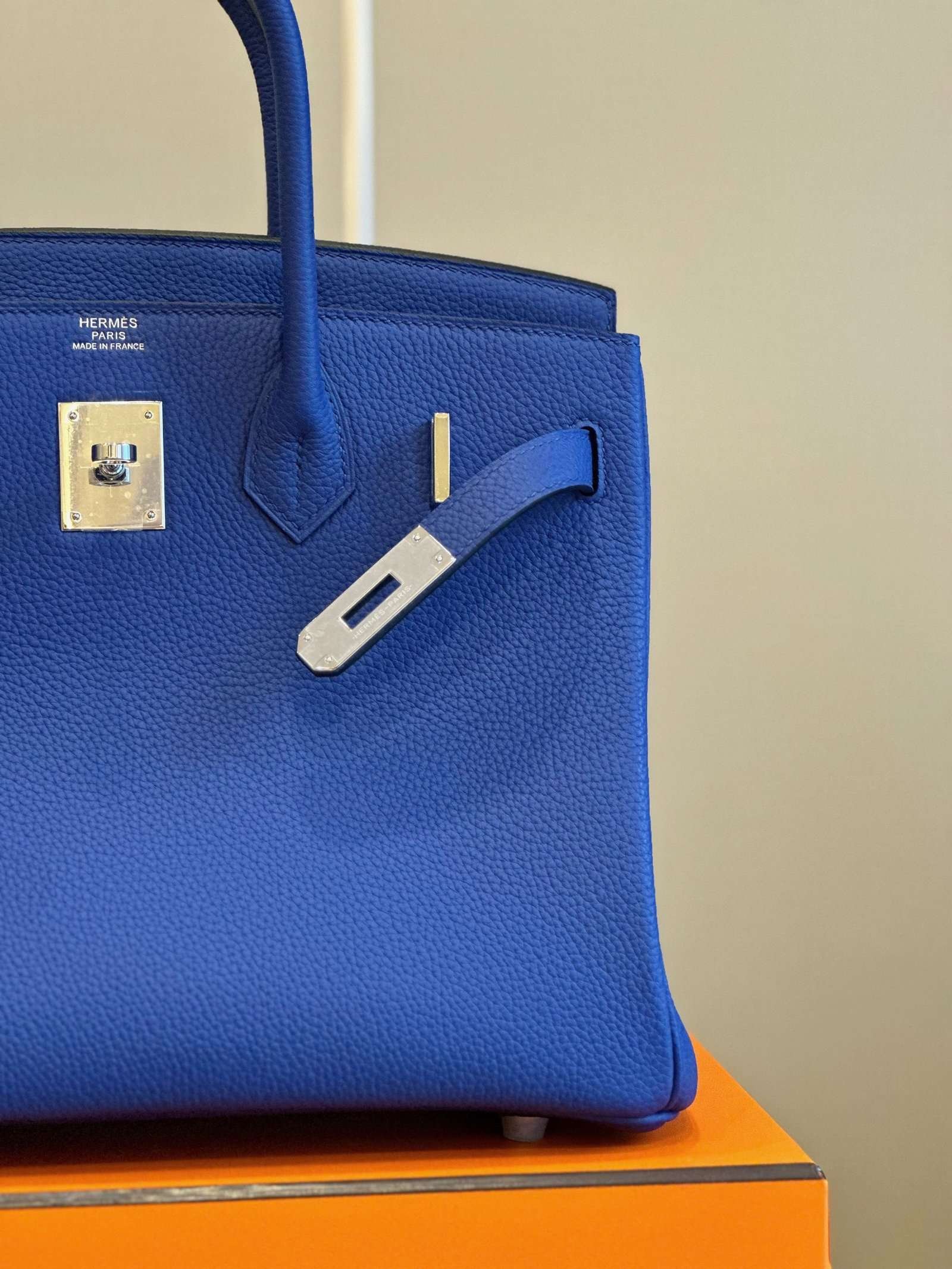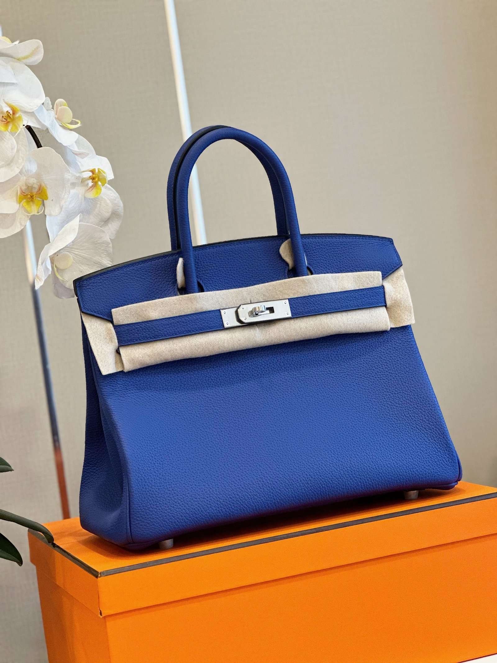Hermes Birkin Togo Blue Lock Silver Bag 30cm
