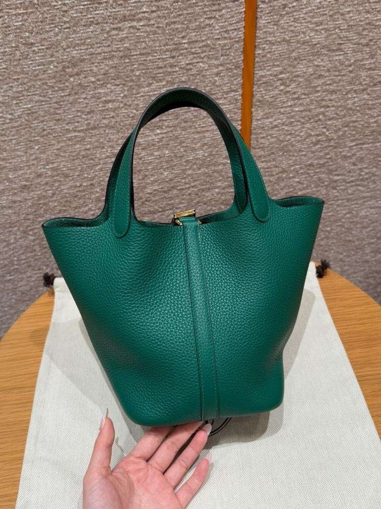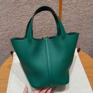 Hermes Togo leather green with gold hardware 18cm - LuxuryRepBags