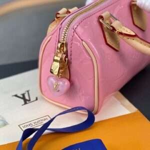 Louis Vuitton LV Nano Speedy Pink Mini Like Auth Shiny Leather Handbags 16x10x7.5cm - LuxuryRepBags