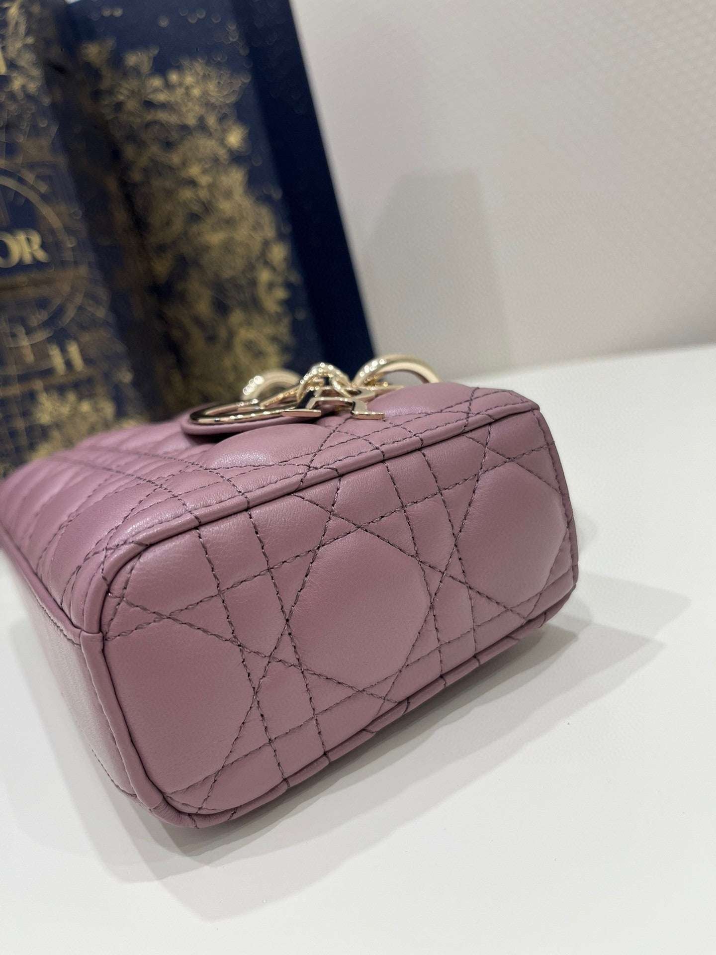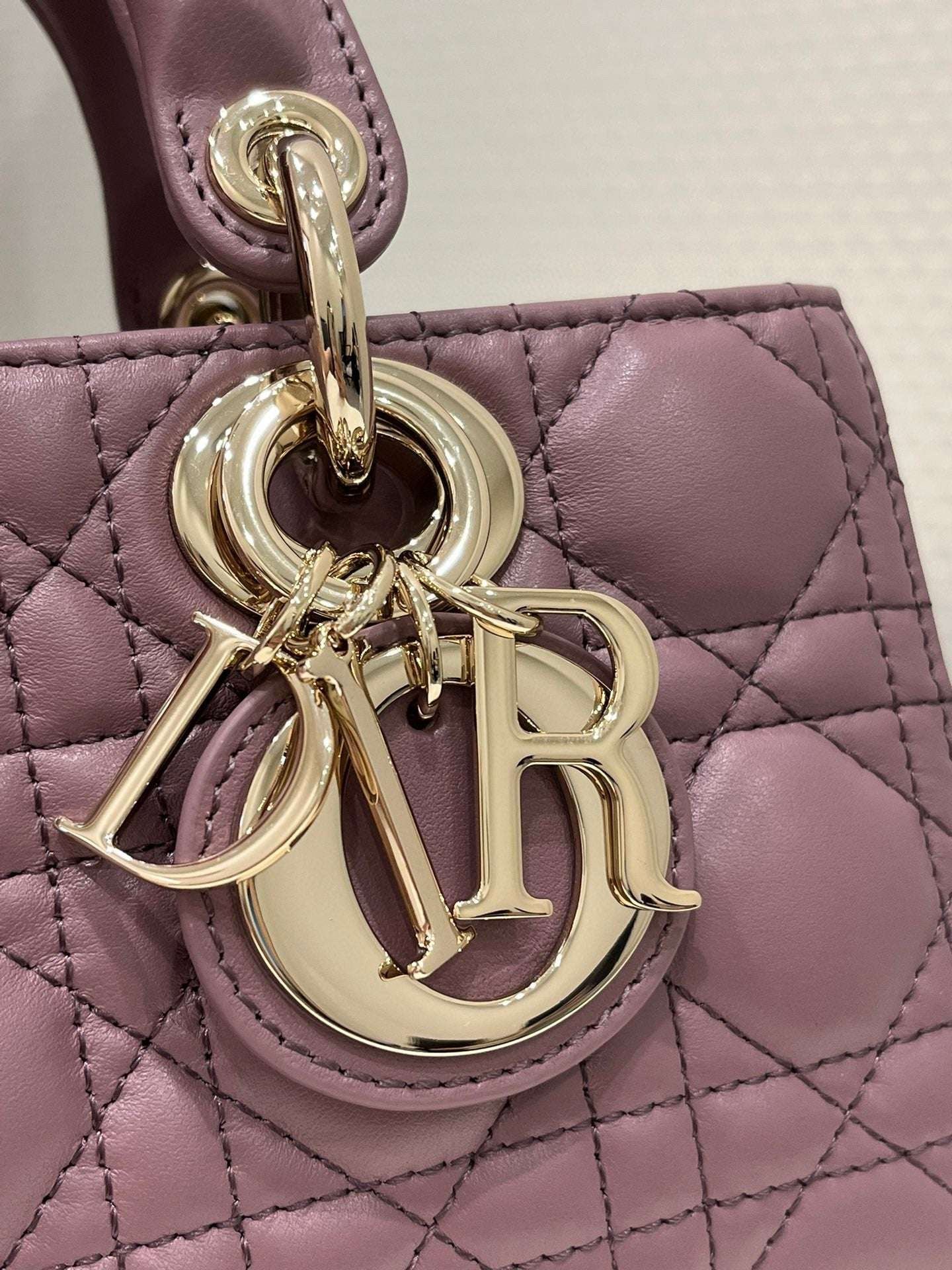 DIOR SMALL LADY D-JOY 22 PURPLE LAMBSKIN - LuxuryRepBags